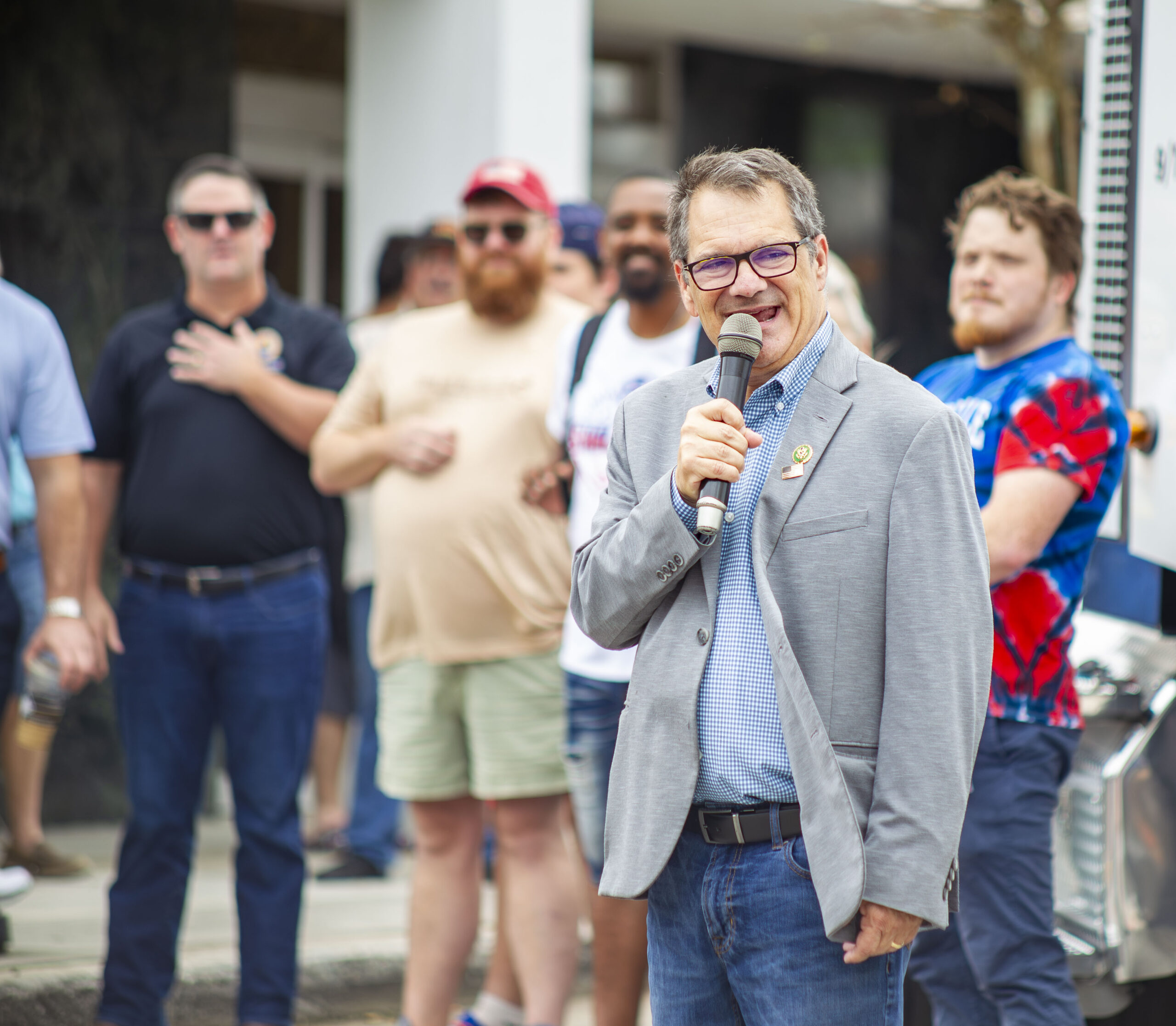 Rep. Gus Bilirakis speaks to the crowd at 2024 Tunnel to Towers 5k Run & Walk in Brooksville, Fla., on Saturday, November 9, 2024. (Photo by Hanna Maglio)