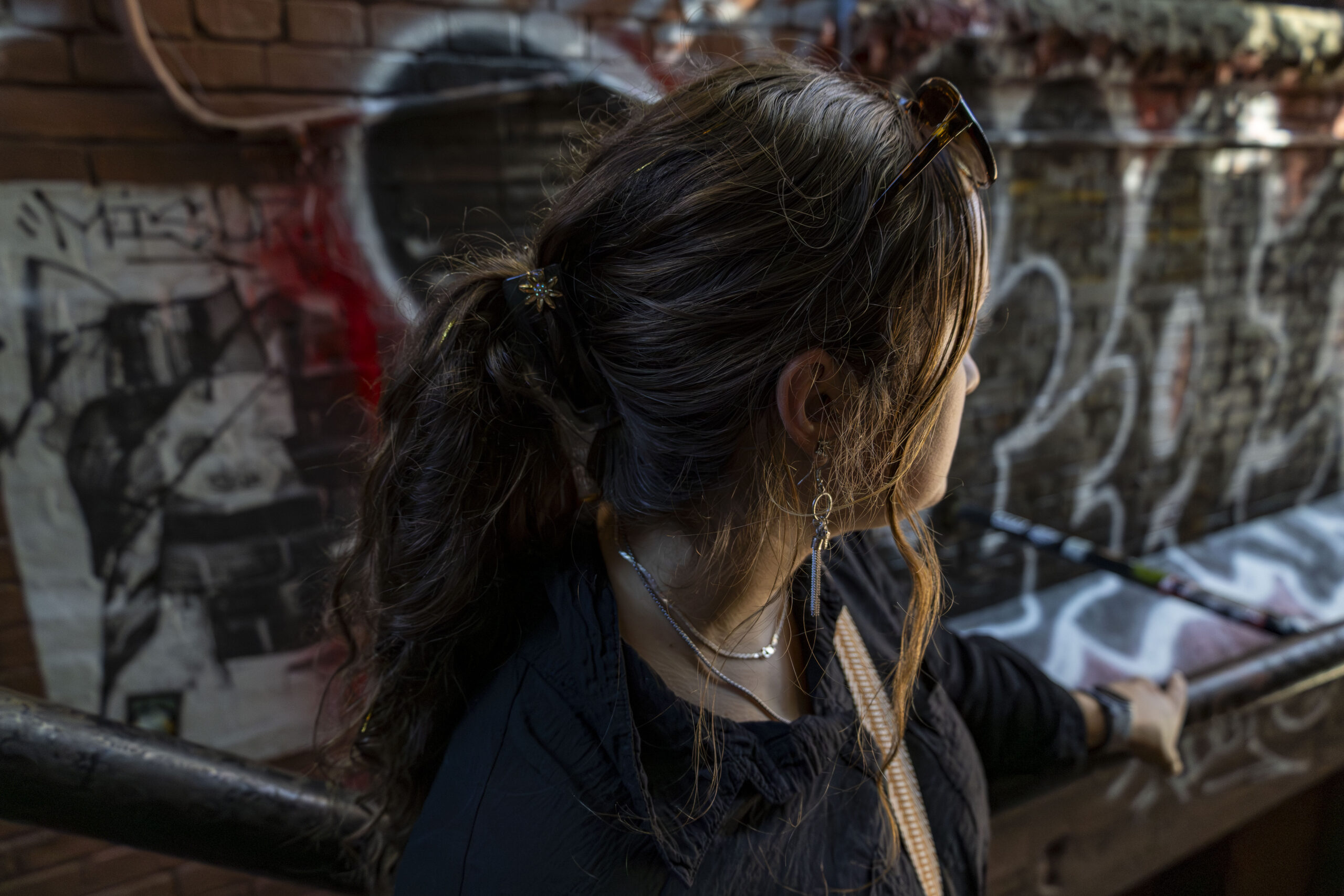 Catherine Seidl adjusts sunglasses on the Exorcist Steps in Georgetown, Washington D.C., on Wednesday, October 8, 2025. (Photo by Hanna Maglio)