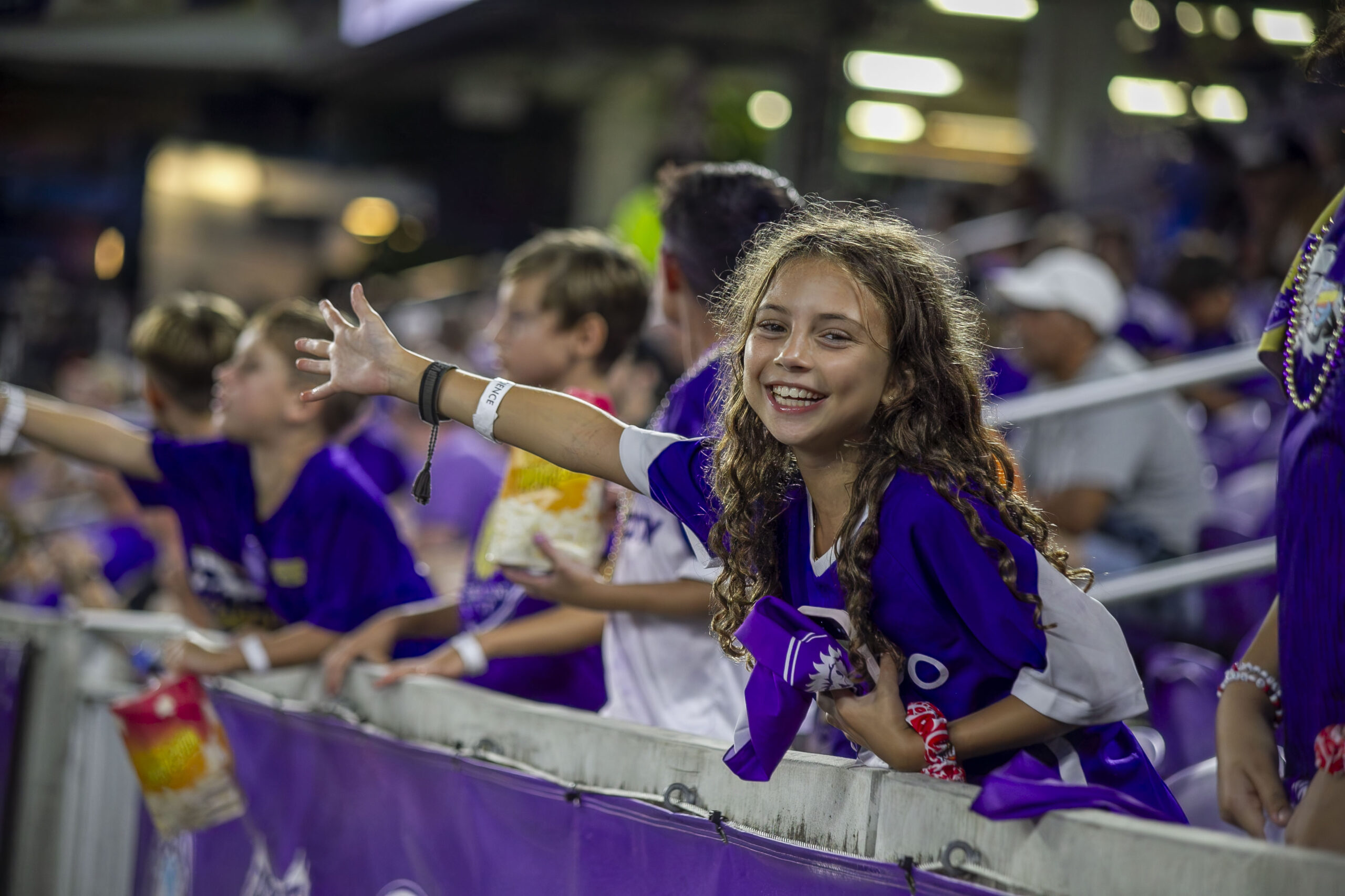 Orlando City fans wave at players during a game at Inter & Co Stadium in Orlando, Fla., on Saturday, August 16, 2025. (Photo by Hanna Maglio)