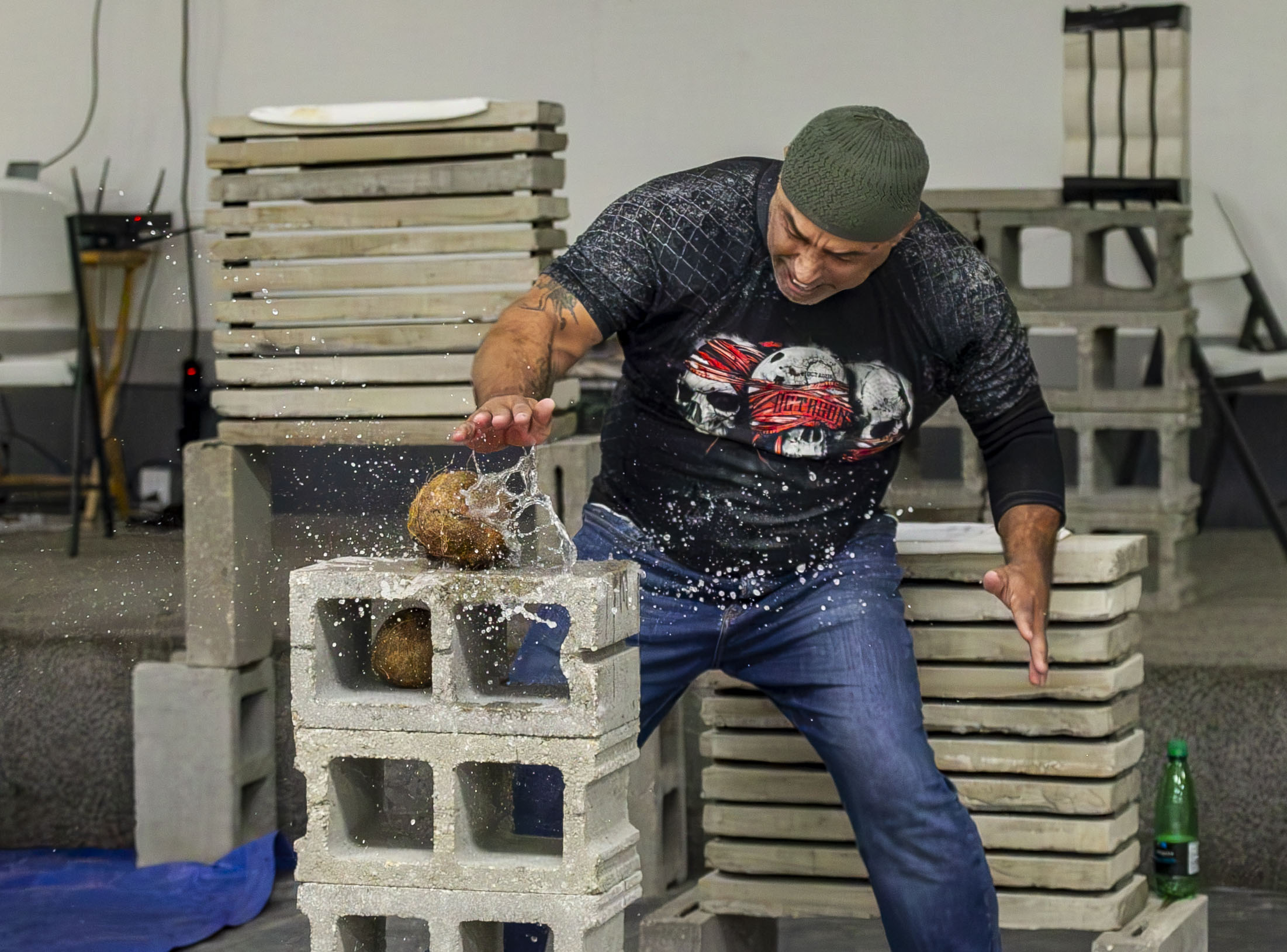 Robert West explodes a coconut at The Deadly Art of Survival Convention in Spring Hill, Fla., on Saturday, September 6, 2025. (Photo by Hanna Maglio)